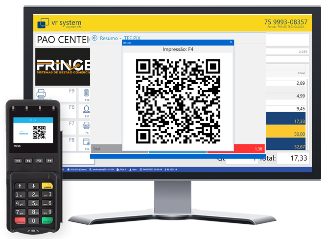 É a geração do QR Code de Pix diretamente no sistema, para o cliente pagar no app do banco, com confirmação no caixa.